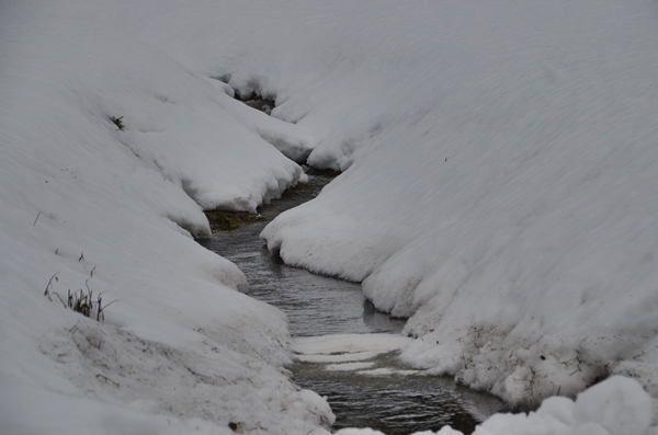 Virker ikke som hundene synes det er kaldt å stå i smeltevann. Jeg for min del synes det er iskaldt når skoene plutselig ikke er tette lenger.