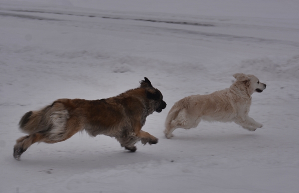 Hundarna ser ut att ha fantastiskt kul i snön :) Menar du att ni slutar prata om väder på vintern? Här tycker jag folk klagar och vill ha vår igår :)