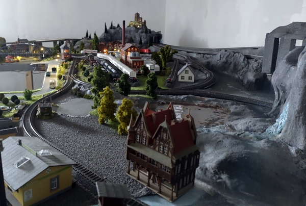Alle liker å vise fram hobbyen sin, så når  jeg fikk vite at noen driver ganske aktivt med å bygge opp en by med flere togsett, fjellandsby, havn, torg, stasjon, brannstasjon, folk og andre rekvisitter. Ja da spør jeg om jeg kan komme å titte. Og jeg fikk ja. Det var virkelig et imponerende anlegg som møtte meg. Og det er vel som alle andre som driver med hobbyer, det er alltid litt til som må lages, litt til før det er fullkomment. Brått får en noen ideer og så å man gjøre om litt. Det som imponerte meg mest var alle detaljene, røyken ut av piper, ys i vinduer, gatelys og ikke minst at togene både tutet og reklamerte at de var på perrongen, samt ønsket "Habe noch einen schönen Tag". Tusen takk for titte Jan.