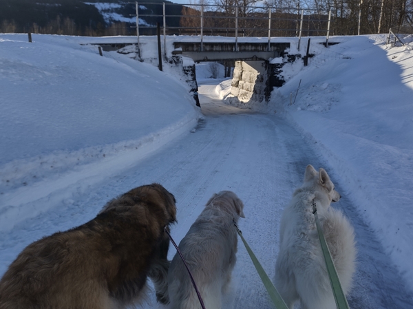 Jeg hadde tenkt meg en runde rundt Bjørneplassen, men innover der var ikke veien brøytet, og det er slett ikke sikkert at noen har tråkket opp stien over jordet heller, så da ble det runden rundt hengebrua.