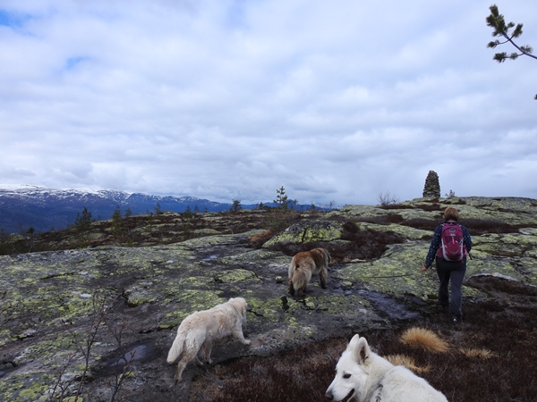 Da vi møtte på snø var i allefall hundene fornøyde. Det er litt vanskelig å huske på at det egentlig burde være mye mer snø her egentlig, på denne tiden av året.