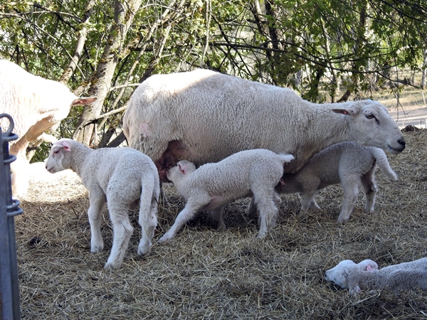 Søyene fulgte veldig med på det Sofie holdt på med. De håpet kanskje at hun hadde litt spesialservering til dem også. Sauene kan gå ut og inn som de vil, og mildværet som har vært i vinter har gjort det ganske sølete . Så noen lambifølelse fikk man ikke akkurat. Men det brydde ikke Sofie seg om,