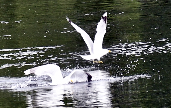 Når jeg plukket opp Sofie i barnehagen på fredag så tok vi en kjapp stopp i Hønefoss for å kikke på fuglene. Jeg så det vrimlet av både gjess og måker når jeg kjørte forbi, så da ble det stopp ved blokkene ved gamle meieriet.