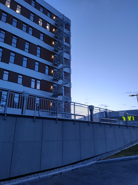 Det er mange forseggjorte kontorbygg på Hvervenmoen, det er lagt litt jobb i at de skal se litt pene ut og ikke bare være en grå kloss. Jeg parkerte ved bygget til Ringerikskraft, det trodde jeg var lurest for å få det til å bli en runde ut av alle stolpene.